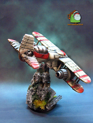 I have seen various versions of this model painted on the web, but none actually painted it the way the box art presents the aircraft. I love the bone white contrasting with the red details and I tried to stay as true to the boxed art as possible. The only thing that I have done my way is the base. If you have seen my unboxing and assembling videos and my previous WIP article you can see the way I made it, mostly tree bark and gravel and some steel wire for the core. As always coments, remarks or anything you want are more than welcome. Don't forget to check my YouTube Channel where I am uploading all sorts of WIPs and unboxing videos from my projects and you can soon find a video on how I painted this model. Also check my Coolminiornot gallery and vote for me if you have the time :)